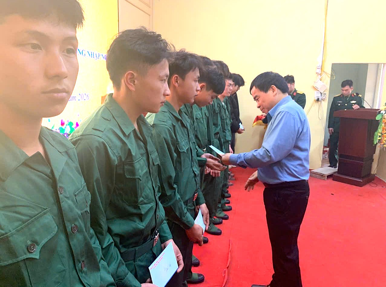 Đ/c Lý Tiến Công Bí Thư Đảng ủy, Chủ tịch HĐND xã Tặng quà các tân binh tham gia nghĩa vụ quân sự năm 2026 xã Lao Chải