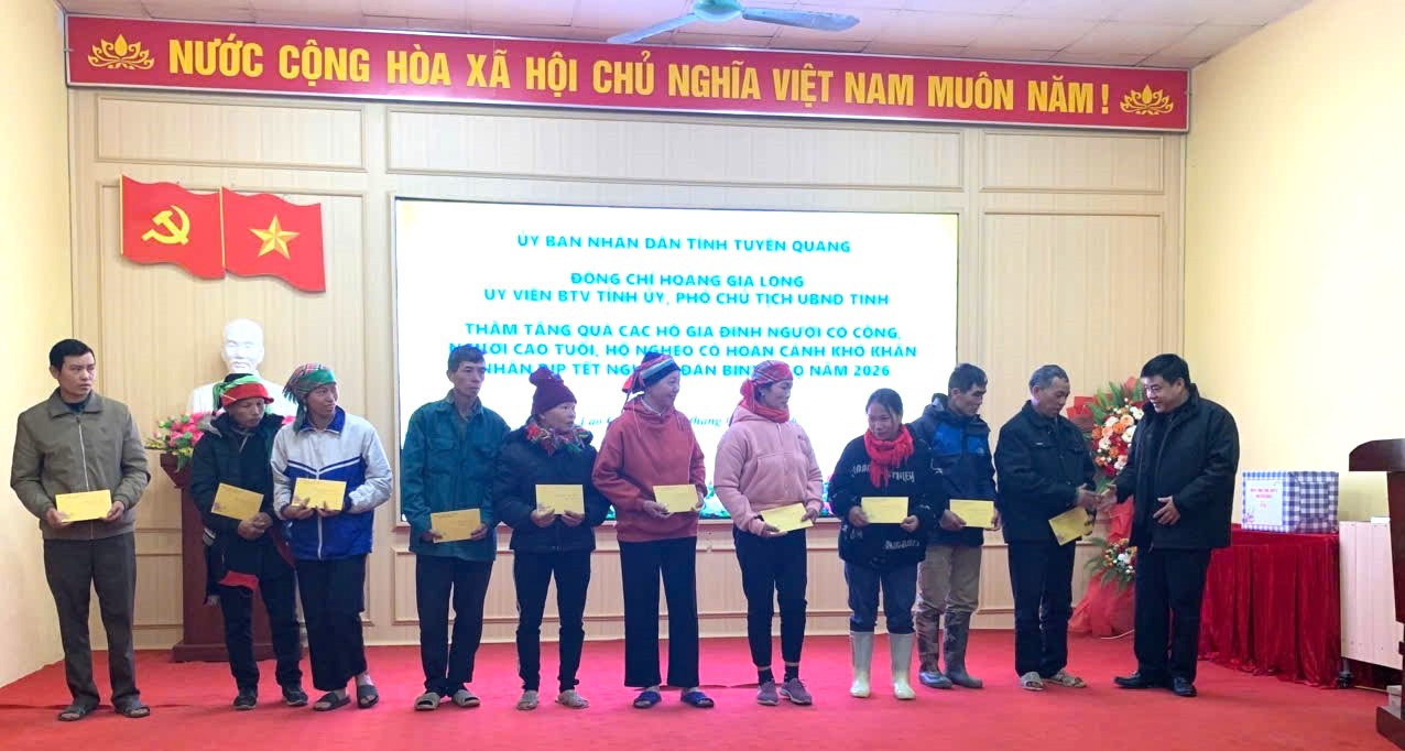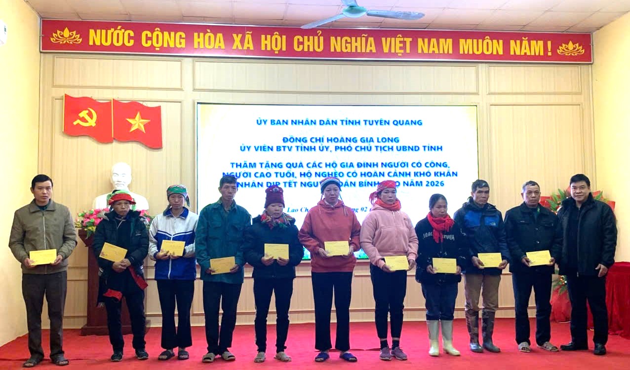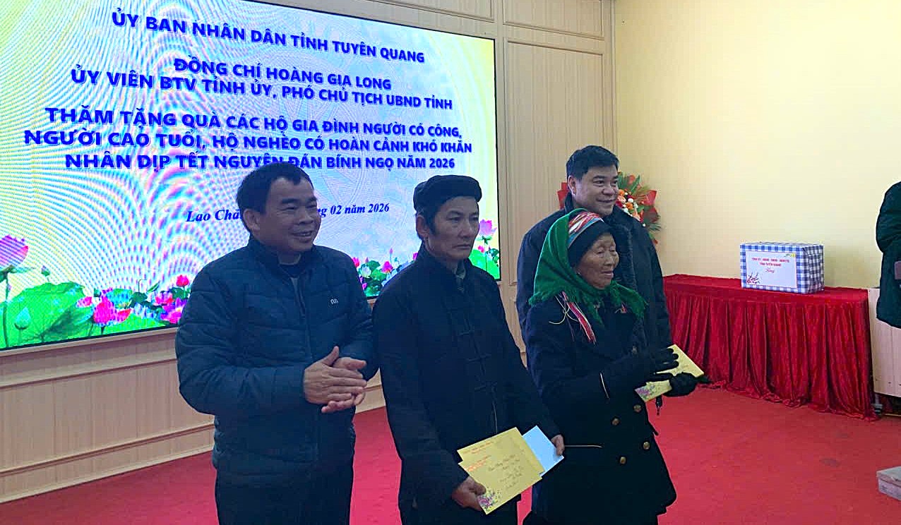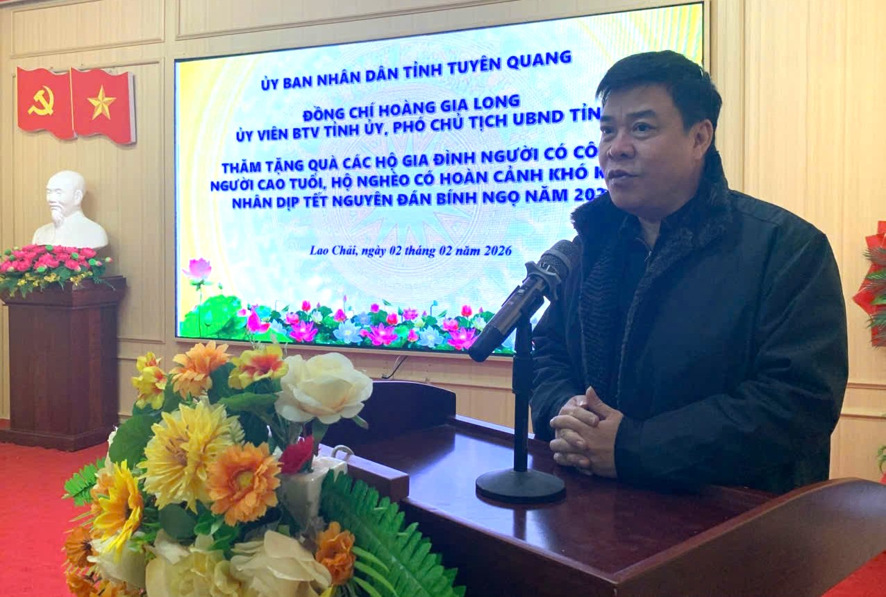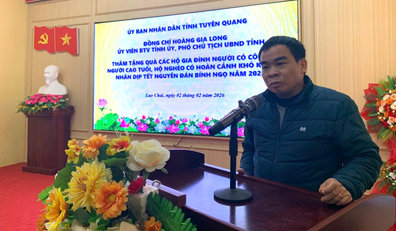 Tại xã Lao Chải đồng chí Hoàng Gia Long đã ân cần thăm hỏi tình hình sức khỏe, đời sống và gửi lời chúc mừng năm mới an khang, thịnh vượng đến các gia đình. Đồng chí khẳng định, Đảng và Nhà nước luôn ghi nhớ, biết ơn những đóng góp, hy sinh của các gia đình chính sách đối với sự nghiệp giải phóng dân tộc và bảo vệ Tổ quốc. Đối với các hộ nghèo và hộ có hoàn cảnh khó khăn, đồng chí trưởng đoàn mong muốn bà con tiếp tục nỗ lực vượt khó, tích cực lao động sản xuất để ổn định cuộc sống. Đồng chí nhấn mạnh tinh thần "không để ai bị bỏ lại phía sau", yêu cầu cấp ủy, chính quyền địa phương cần rà soát kỹ lưỡng, đảm bảo mọi người dân đều được đón Tết trọn vẹn, ấm cúng.