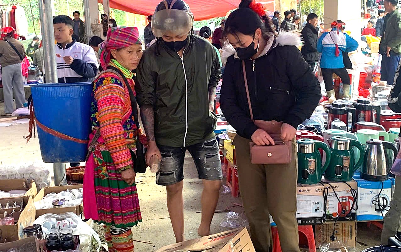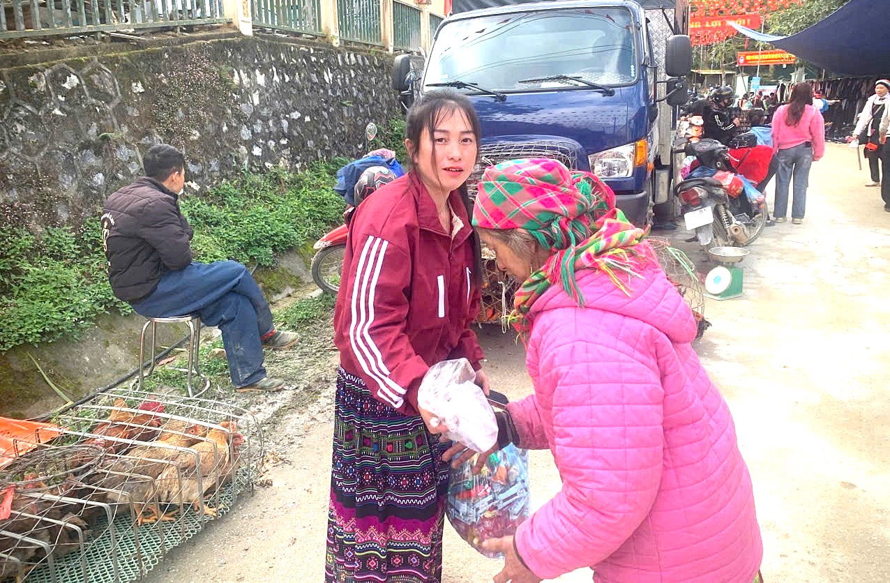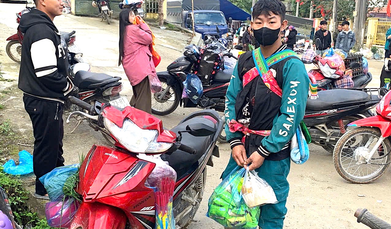 Hình ảnh bà con nhân dân xã Lao Chải đi mua sắm các vật dụng thiết yếu cho ngày tết