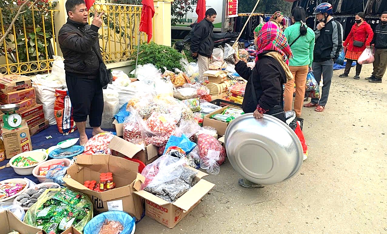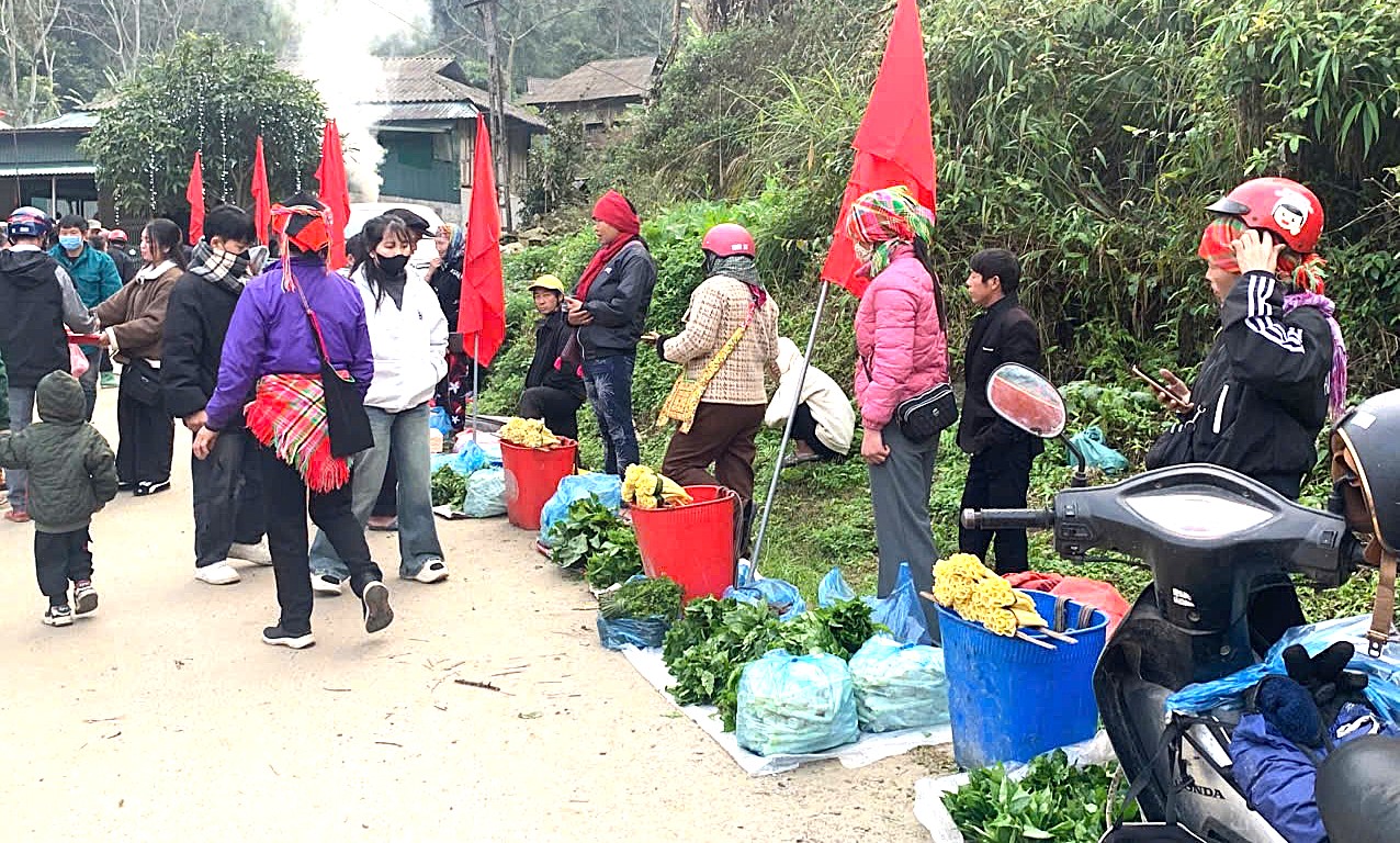 Ngay từ sáng sớm, phiên chợ đã thu hút đông đảo người dân các thôn, bản trong xã và khu vực lân cận đến trao đổi, mua bán hàng hóa.